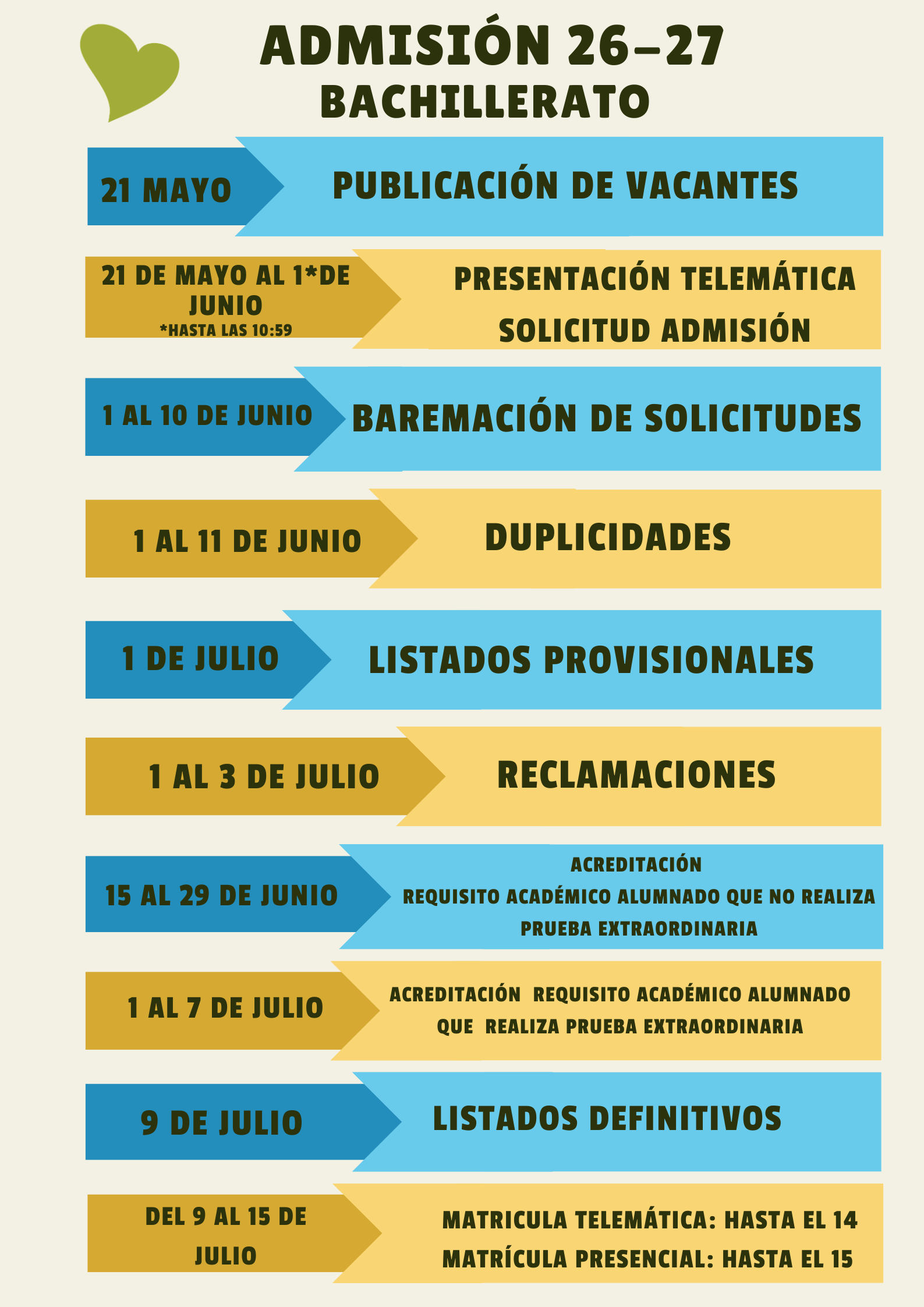 DOGV 10313 (02-03-2026): RESOLUCIÓN de 25 de febrero de 2026, de la Dirección General de Centros Docentes, por la que se establece el calendario y se dictan instrucciones respecto al procedimiento de admisión del alumnado en los centros docentes sostenidos con fondos públicos de la Comunitat Valenciana que imparten enseñanzas de Educación Infantil, Educación Primaria, Educación Secundaria Obligatoria y Bachillerato, y en los centros de Educación Especial, para el curso 2026-2027.
